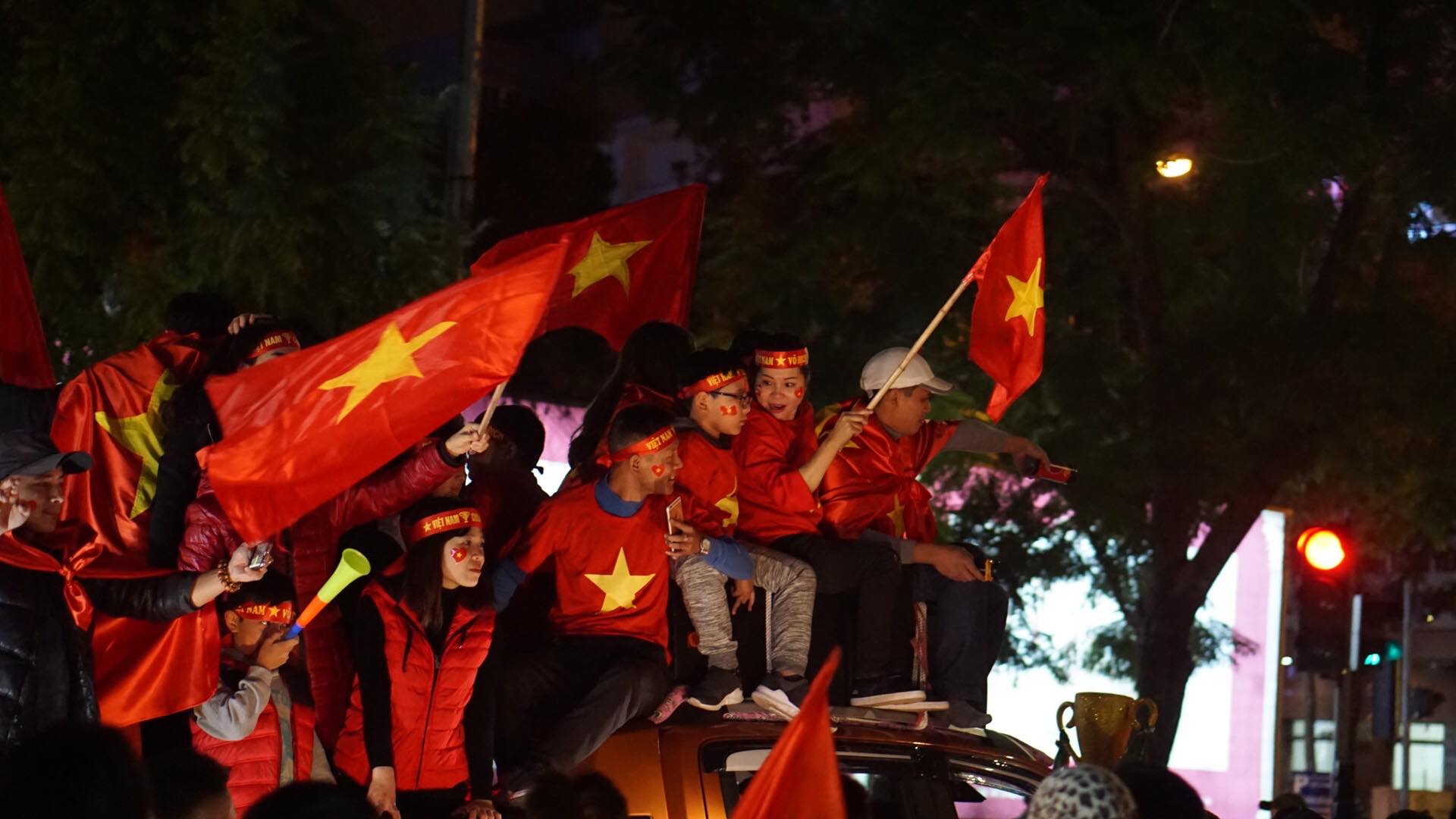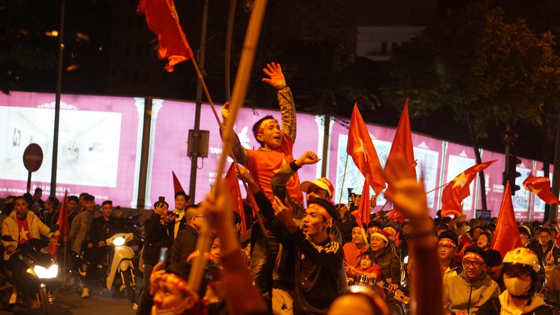 Khắp các ngả đường, người hâm mộ kéo nhau đi bão ăn mừng. Âm nhạc được mở hết cỡ tại nhiều nơi, từ ca khúc sôi động đến những điệu dân ca truyền thống ca ngợi quê hương đất nước đều vang lên rầm rộ. Pháo sáng, đuốc đỏ đã được thắp lên, cờ đỏ sao vàng đang tung bay trên từng ngõ ngách. Chắc chắn, đây sẽ là một đêm khiến hươn 90 triệu người nhớ mãi không bao giờ quên.