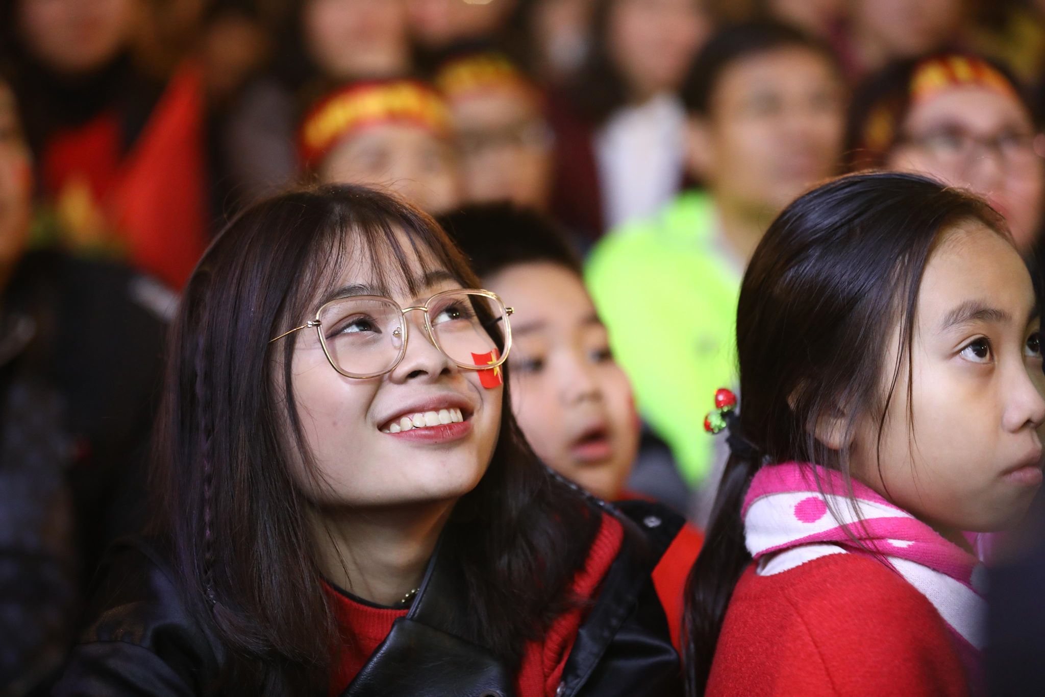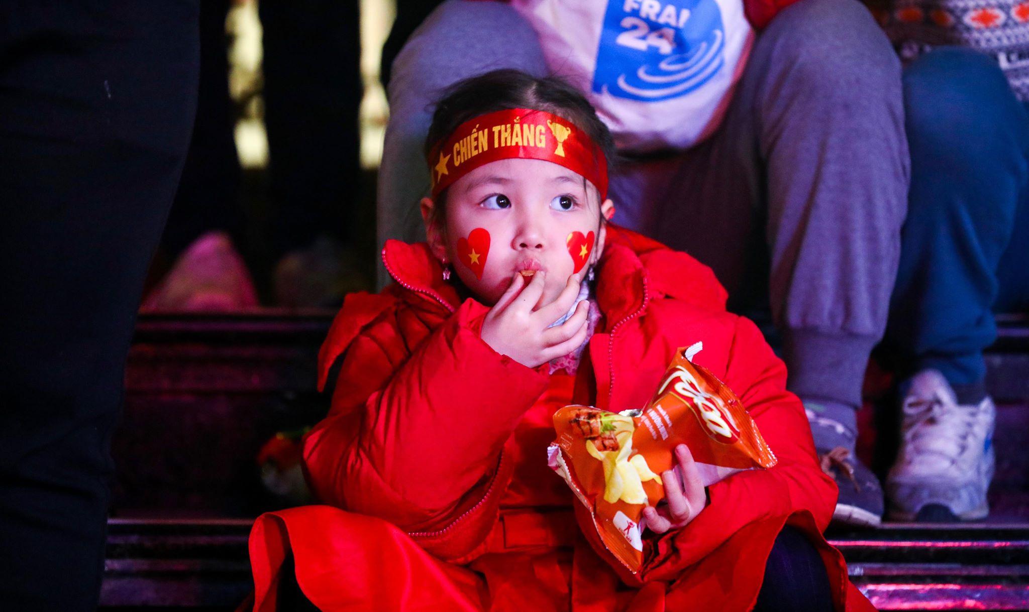 Những em nhỏ theo chân cha mẹ đi cổ vũ bóng đá.