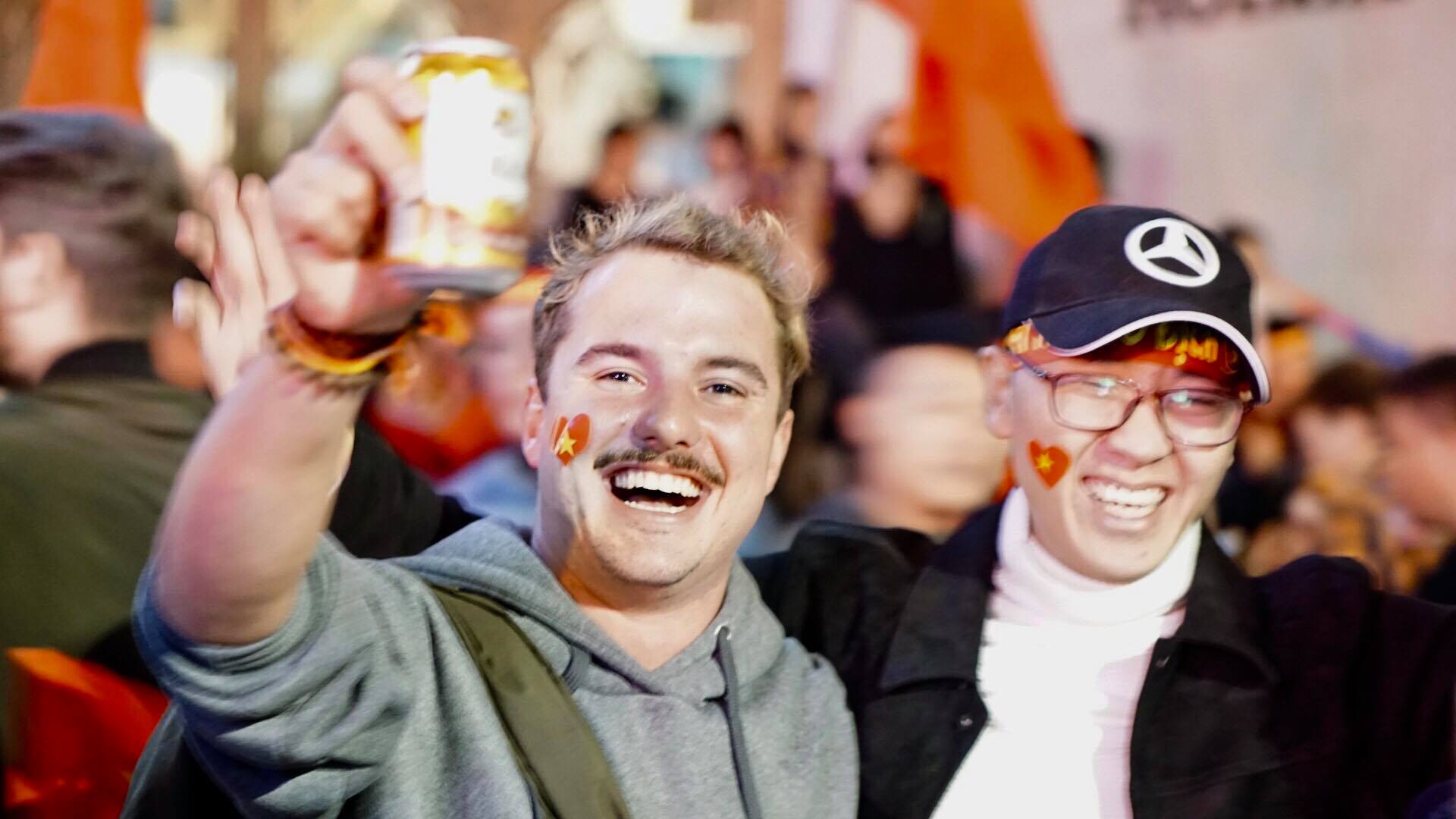 CĐV nước ngoài hết mình cùng người hâm mộ Việt Nam.