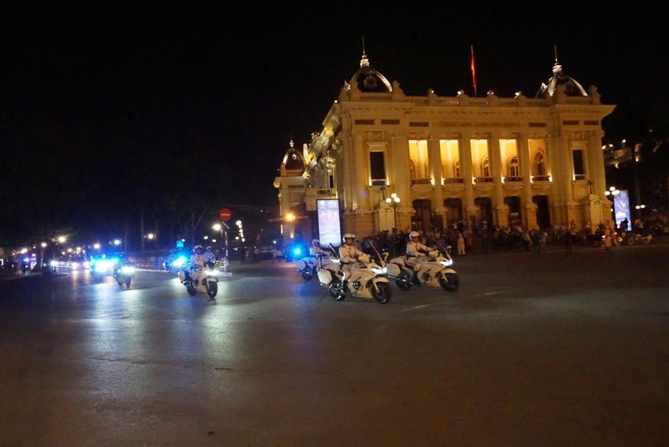 Clip đoàn xe tháp tùng Tổng thống Donald Trump trên đường phố Hà Nội.