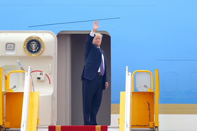 Tiễn ông tại sân bay có Chủ tịch UBND TP Hà Nội Nguyễn Đức Chung, cạnh đó là các em thiếu nhi đứng vẫy cờ Việt Mỹ. Ông Trump nhận bó hoa từ đại diện Việt Nam trước khi rời Hà Nội.
