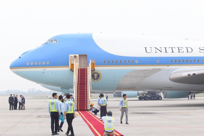 Chiếc Air Force One cùng đoàn tùy tùng của ông Donald Trump cất cánh lúc hơn 13h, sau một buổi sáng đầy ắp lịch hoạt động giữa Tổng thống Mỹ với lãnh đạo nhà nước Việt Nam.