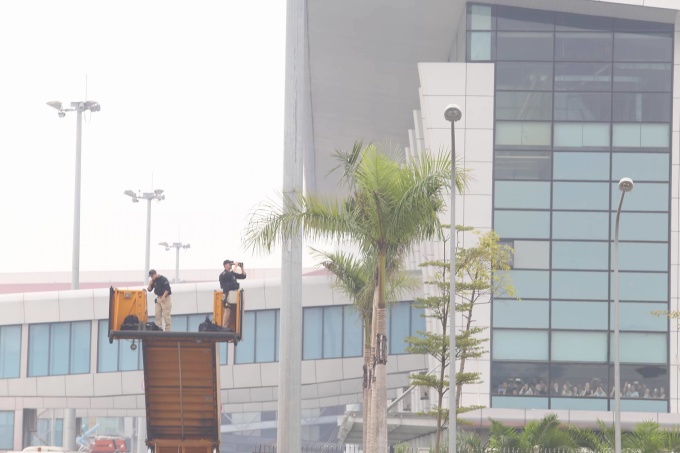 Công tác hậu cần chuẩn bị lễ tiễn Tổng thống Mỹ diễn ra dưới tiết trời sương mù.