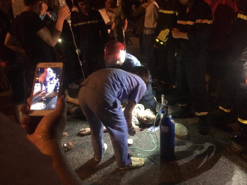 Hậu quả, vụ tai nạn khiến 2 thanh niên trên xe máy văng xuống đường. Ngay sau đó xe cứu thương đã đến sơ cứu cho nạn nhân rồi nhanh chóng đưa đi bệnh viện trong tình trạng nguy kịch.