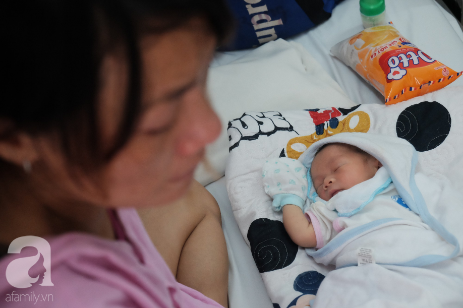 Nhìn đứa nhỏ vừa sinh ngủ ngon lành trên giường bệnh, chị Lê Thị Thắm (33 tuổi, quê Thanh Hóa) nước mắt ngắn dài. Để con có thể ra đời bình an, 5 tháng nay chị đã gánh chịu bao nhiêu khổ cực.
