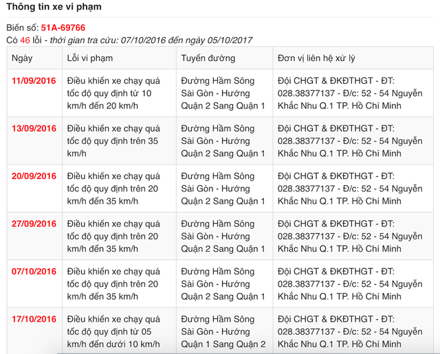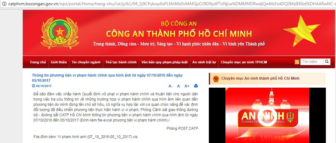 Mới đây, để bảo đảm việc chấp hành Quyết định xử phạt hành chính với việc vi phạm luật giao thông được theo dõi qua hình ảnh (xử phạt nguội), Phòng Cảnh sát giao thông đường bộ - đường sắt, công an TP. HCM đã đăng tải file văn bản, trong đó ghi rõ cụ thể từng lỗi vi phạm đối với tất cả các xe ô tô lưu thông trên địa bàn, từ ngày 07/10/2016 đến 05/10/2017.