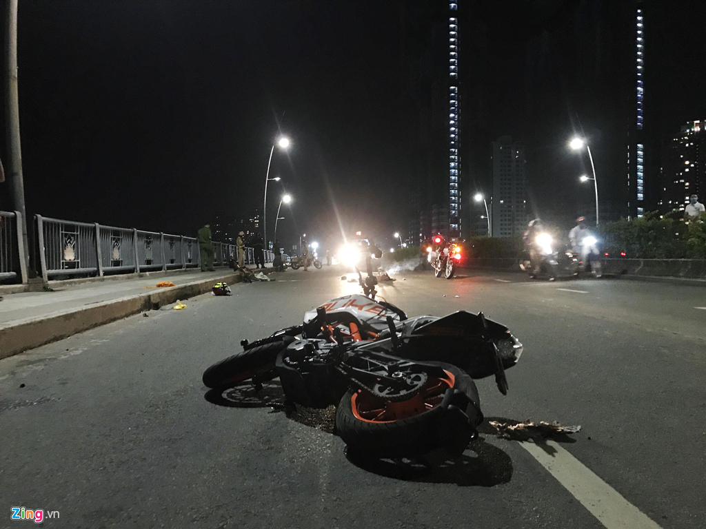 Thời điểm trên, theo báo Tổ Quốc, chiếc môtô phân khối lớn hiệu KTM 390 Duke do Nguyễn Tấn Vinh (21 tuổi, ngụ quận 7, TP.HCM) cầm lái, lưu thông trên cầu Thủ Thiêm theo hướng vào khu đô thị Sala. Khi đến giữa cầu, 1 người đàn ông tầm 50 tuổi (chưa rõ danh tính) dắt xe đạp đi bộ ra giữa đường để nhặt đồ, chiếc xe máy do không xử lý kịp nên đã xảy ra va chạm.