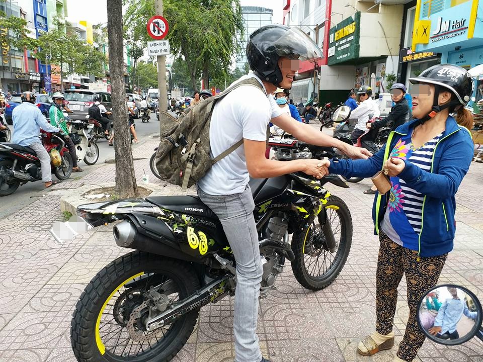 “Ngưỡng mộ sự dũng cảm của anh đi moto quá. Đáng lẽ anh cũng đã có thể mặc kệ như bao người khác. Nhưng anh đã làm một việc trượng nghĩa. Cảm ơn anh.”