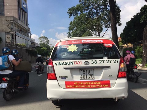 Những ngày qua, việc nhiều taxi hãng Vinasun dán decal ở đuôi xe, biểu tình phản đối Uber, Grab xuất hiện ở thị trường Sài Gòn đã khiến dư luận xôn xao. Theo đại diện của hãng xe này, việc dán băng rôn là hành động tự phát của cánh tài xế. Tuy nhiên, một số tài xế đã chủ động gỡ decal và cho rằng, việc làm này là chủ trương từ phía công ty.