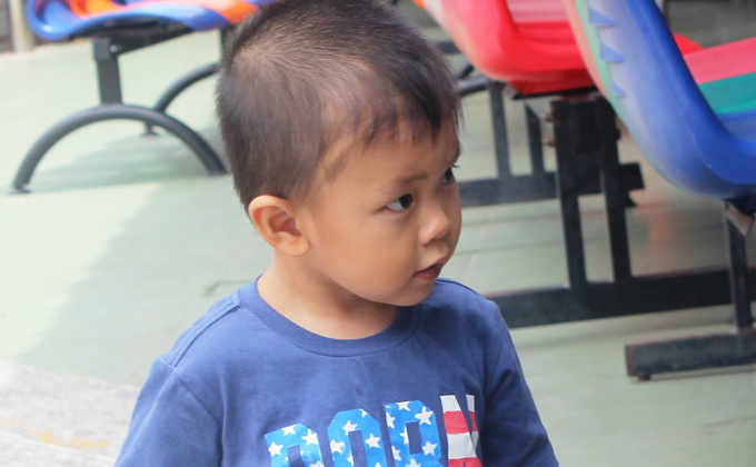 Bé Dương Minh Phát ngày nào mới chào đời đã bị một người phụ nữ lạ đâm xuyên hốc mắt vào não, nay được hơn hai tuổi với vẻ lém lỉnh, đáng yêu. Tái khám định kỳ ba tháng tại Bệnh viện Nhi đồng 1 (TP HCM) sáng 19/9, cậu bé luôn miệng “dạ” vẫy chào bác sĩ.