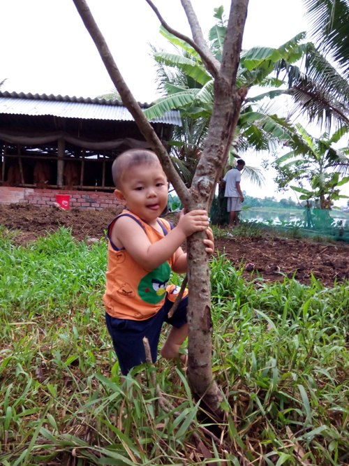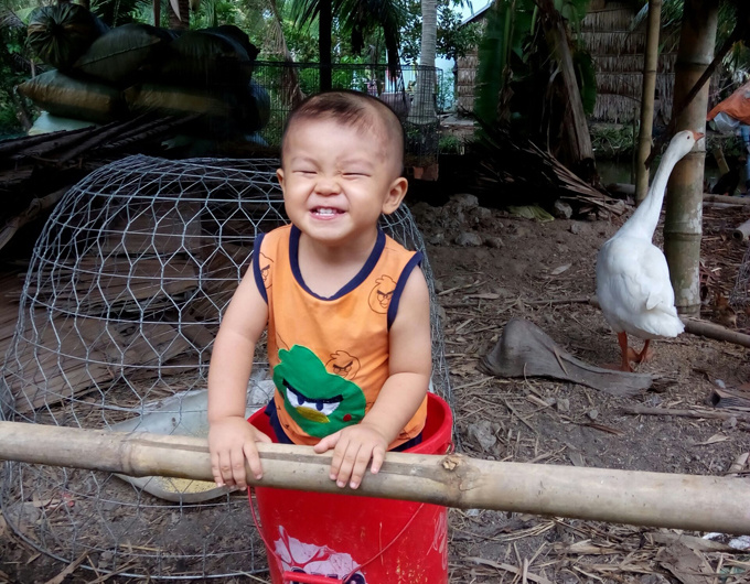 Mẹ bé là Võ Thị Hồng Duyên cho biết con bắt đầu đi được từ 23 tháng tuổi, khá lanh lẹ, nghịch ngợm.