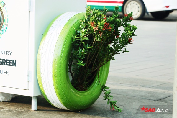 Điều đặc biệt hơn cả là bên hông chiếc thùng rác này đều được gắn một chiếc vỏ xe và trồng vào đây… một loại cây. Chiếc thùng rác thông minh này còn có cấu tạo dùng để lọc nước và nuôi cây xanh. Một việc làm vô cùng thiết thực và ý nghĩa dành cho môi trường.