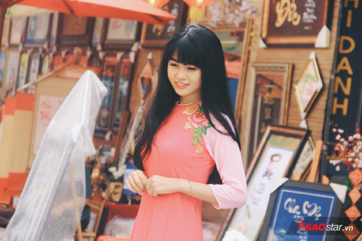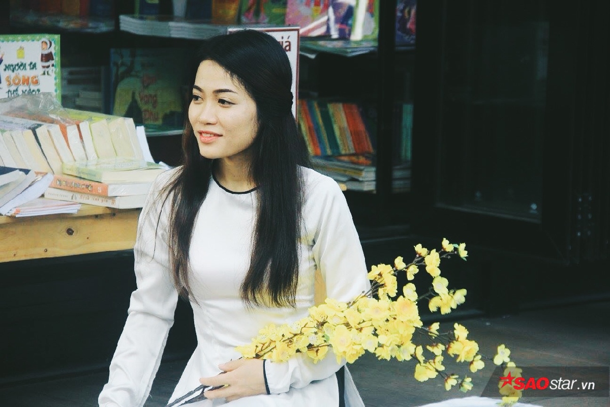 Những cô gái bình thường váy áo giản dị nay bỗng xinh đẹp và dịu dàng hơn trong tà áo dài. Ai cũng xinh xắn và nền nã, đứng nép mình giữa mùa xuân bỗng thấy thành phố yên bình quá đỗi.