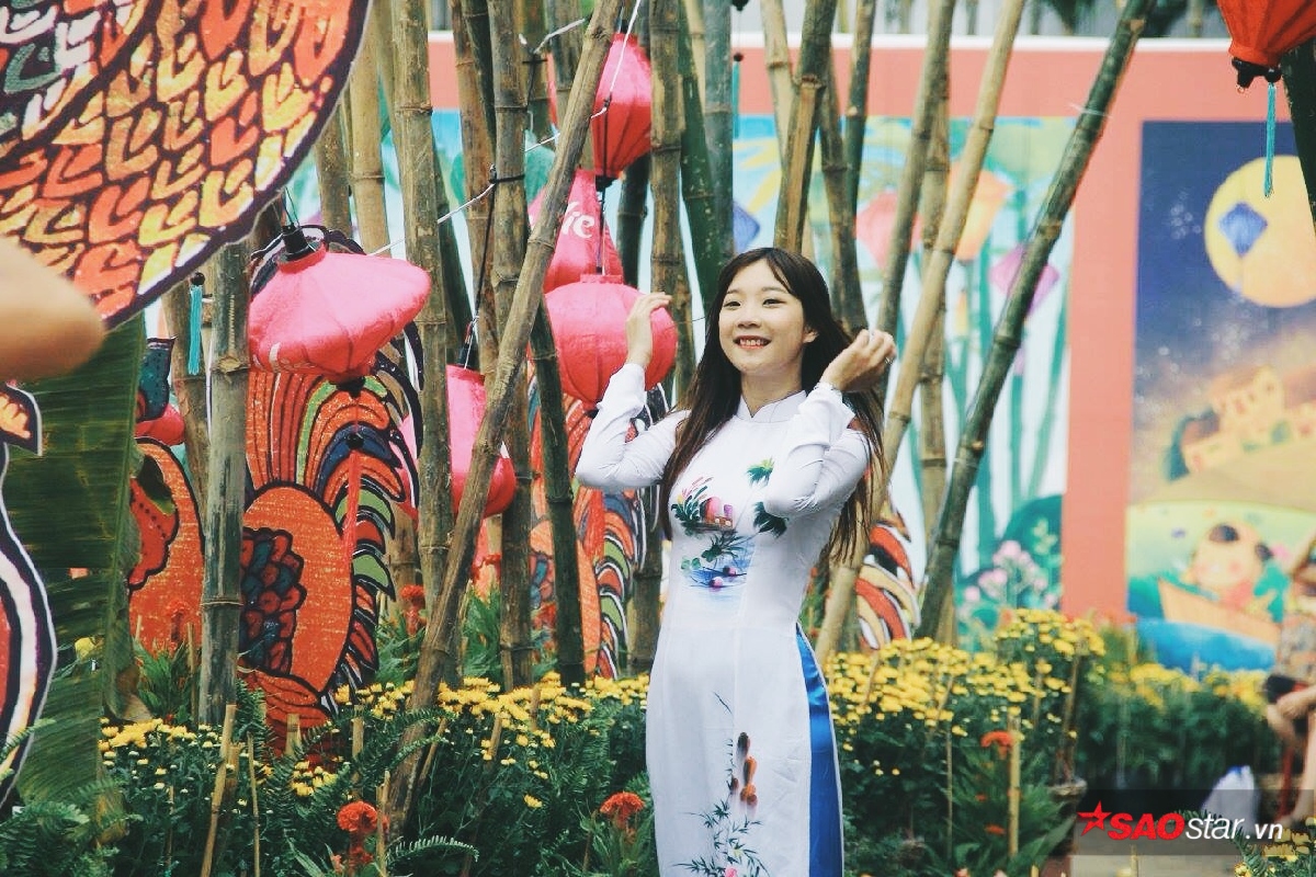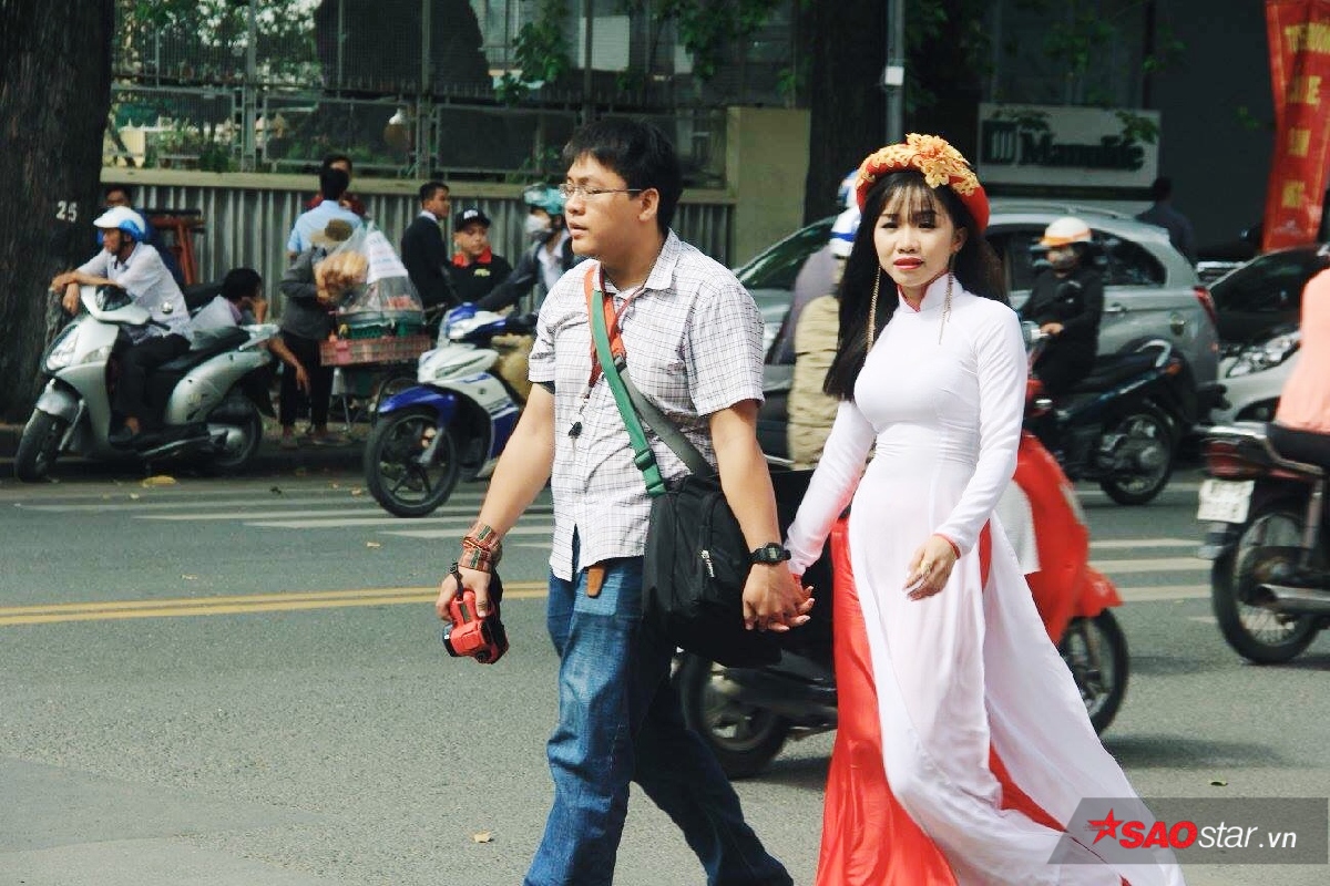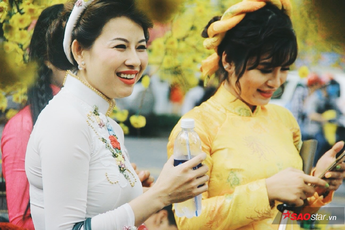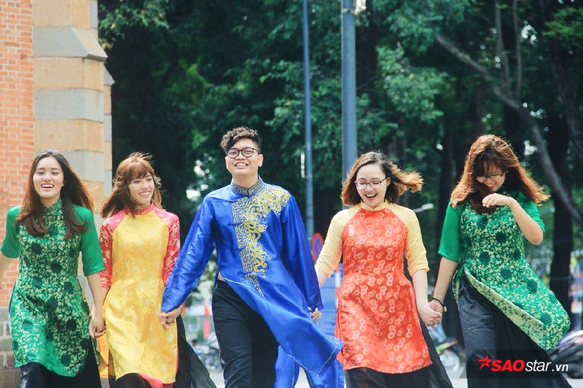 Sự đổ bộ của những tà áo dài cách tân lẫn truyền thống vào mùa Tết đã tạo cho con phố một diện mạo vô cùng rực rỡ. Những tà áo dài đủ màu sắc bay phấp phới trong gió xen lẫn trong không khí mùa xuân lại ai cũng rạng rỡ hơn. Nhiều nhóm bạn còn rủ nhau mặc “đồng phục áo dài” để khoe dáng bên cạnh những cành mai vàng. Theo như lời bạn Nguyên Vũ - một sinh viên chụp ảnh nhóm sáng nay chia sẻ : “Tết là dịp cả đám có cơ hội được diện đẹp rồi chụp ảnh với nhau nên ai cũng thích hết. Vừa có hình để “sống ảo” trên facebook lại vừa có kỷ niệm đẹp với bạn bè.”