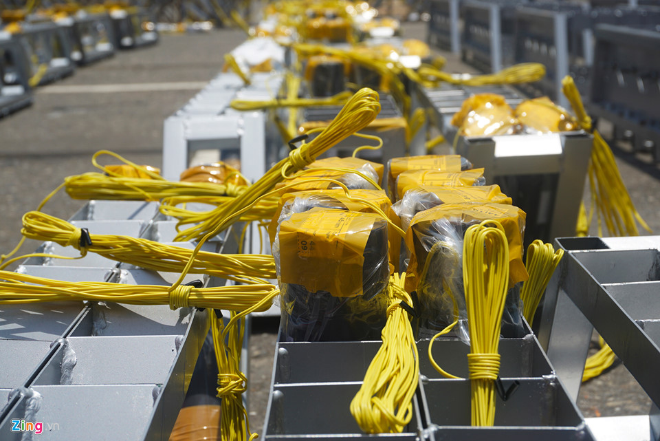 Hàng nghìn quả pháo đang khẩn trương lắp đặt cho đêm khai mạc cuộc thi pháo hoa Quốc tế 2018 tại Đà Nẵng.,