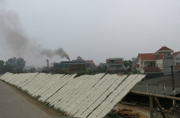 Ngoài phơi miến không đảm bảo vệ sinh, các hộ sản xuất miến còn xả thải nước thải không qua xử lý ra môi trường gây ô nhiễm. Những cột khói đen ngòm bốc lên từ các hộ sản xuất miến cứ thế xả thẳng vào bầu không khí của làng nghề. Tiếp đó, miến làm xong lại được phơi ngay trong môi trường ô nhiễm như thế, đầy khói thải và thậm chí còn gần ngay nơi xả nước thải.