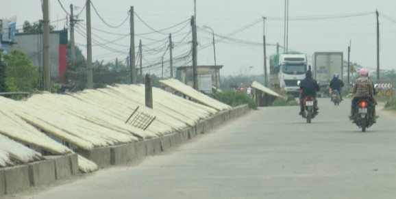Ngoài đường bụi bay mù mịt cũng thành nơi phơi khô miến.