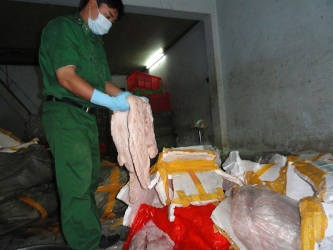 Lực lượng chức năng bắt giữ một vụ vận chuyển thực phẩm bẩn.