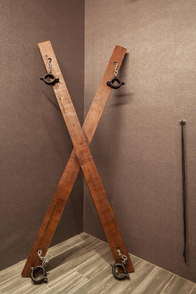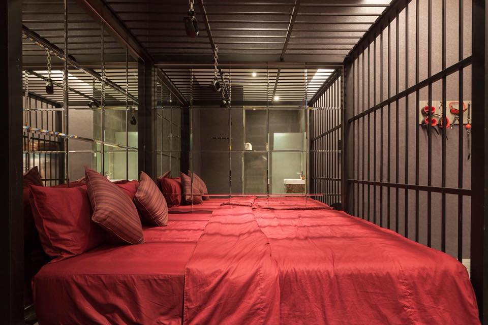 Hai phòng kết cấu và bài trí hình thức bạo lực. Trong đó,một phòng kết cấu ngăn bằng khung sắt sơn màu đen, có cửa khóa lại; Bên ngoài là giường ngủ, bên trong có hai sợi xích còng tay treo trên tầng nhà, một bức ảnh một người bị khóa tay bằng dây xích. Một phòng giường ngủ làm bằng song sắt 3 vách, có trang bị hình gỗ hình chữ X, có gắn 4 dây xích còng tay và chân. Về biển hiệu có trang trí 3 sao.