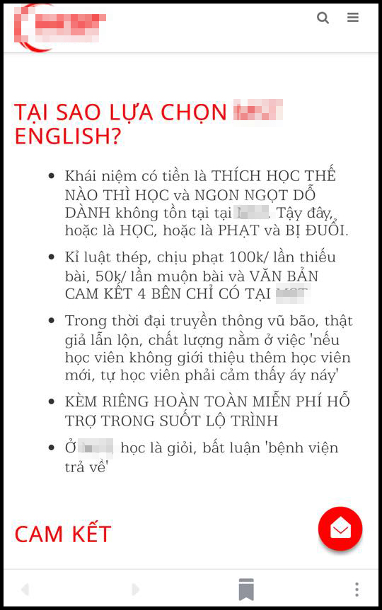 Ảnh chụp màn hình được cho là quy định của trung tâm Anh ngữ này