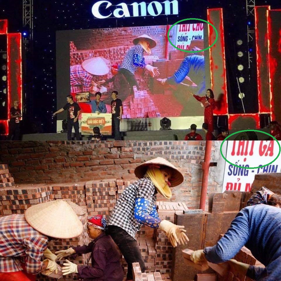 Cụ thể, trong ảnh nguyên gốc cụm từ “Thịt chó - Sống chín đủ món” được thay thế bằng “Thịt gà - Sống chín đủ món” ở góc trái phía trên. Tại buổi lễ công bố kết quả cuộc thi, bức ảnh vẫn hiện chữ “thịt chó”.