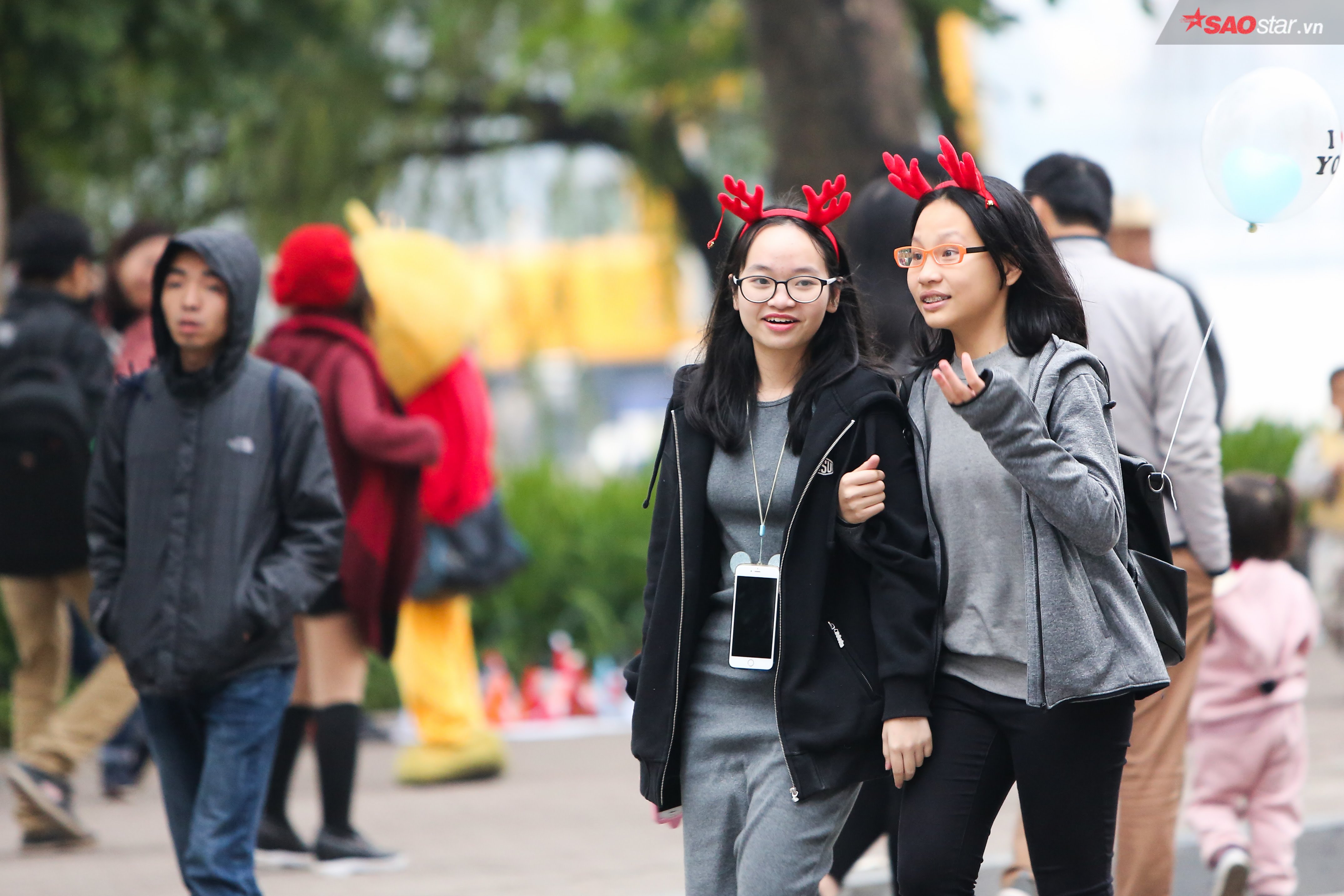 Các bạn trẻ mang theo bờm tuần lộc đi chơi Noel.