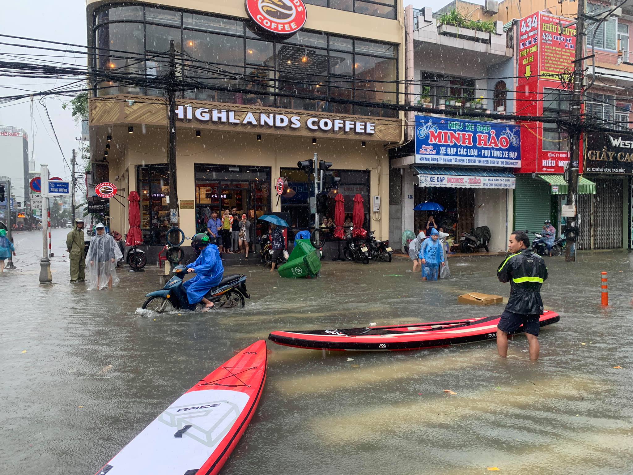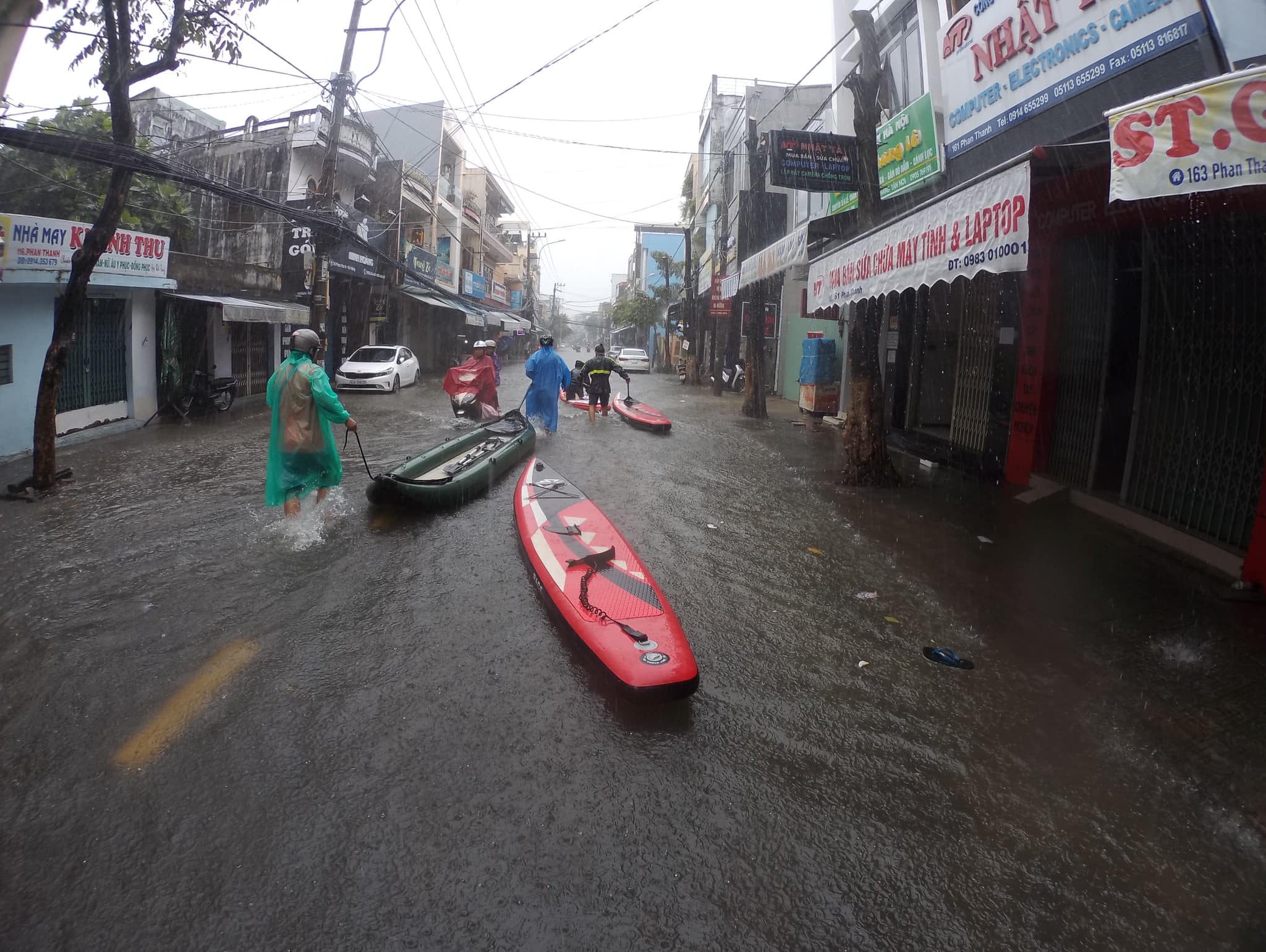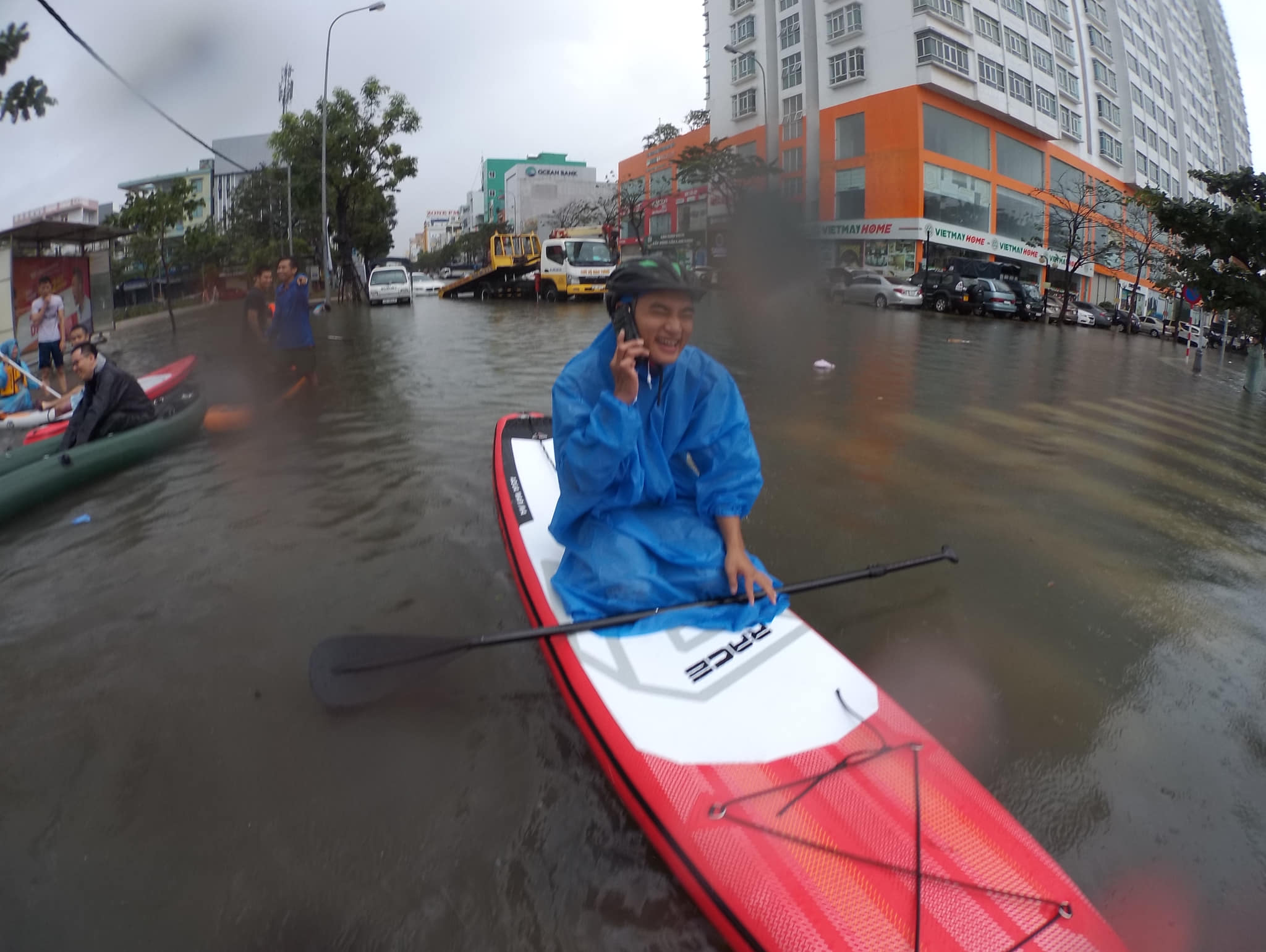 Có thể nói đây là trận mưa lịch sử ở Đà Nẵng, mưa cả ngày và không có dấu hiệu ngớt nên khả năng nước vẫn sẽ dâng cao, nhiều tuyến đường gần như bị ngập lụt nặng. Trong ngày mai, có khả năng tôi cùng các anh em trong nhóm sẽ tiến vào Hội An để tiếp tục lướt ván đứng.