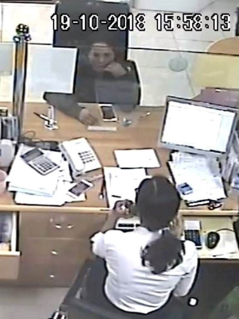 Người này vừa vào ngân hàng định giao dịch gì đó nhưng không thực hiện. Người phụ nữ chỉ xuất hiện vài phút và lấy điện thoại, nhanh chóng đi mất.