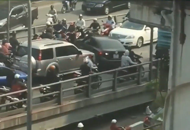 Thời điểm này, dòng người đang qua lại trên cầu vượt Thái Hà rất đông đúc khiến tình trạng ùn tắc càng trở nên nghiêm trọng. Rất nhiều người tỏ ra bức xúc trước hành động thiếu ý thức, vi phạm luật giao thông của tài xế ô tô.