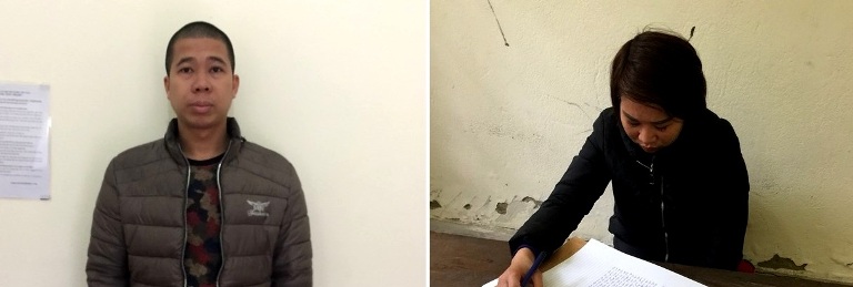 Vợ chồng Vũ - Thanh tại cơ quan công an.