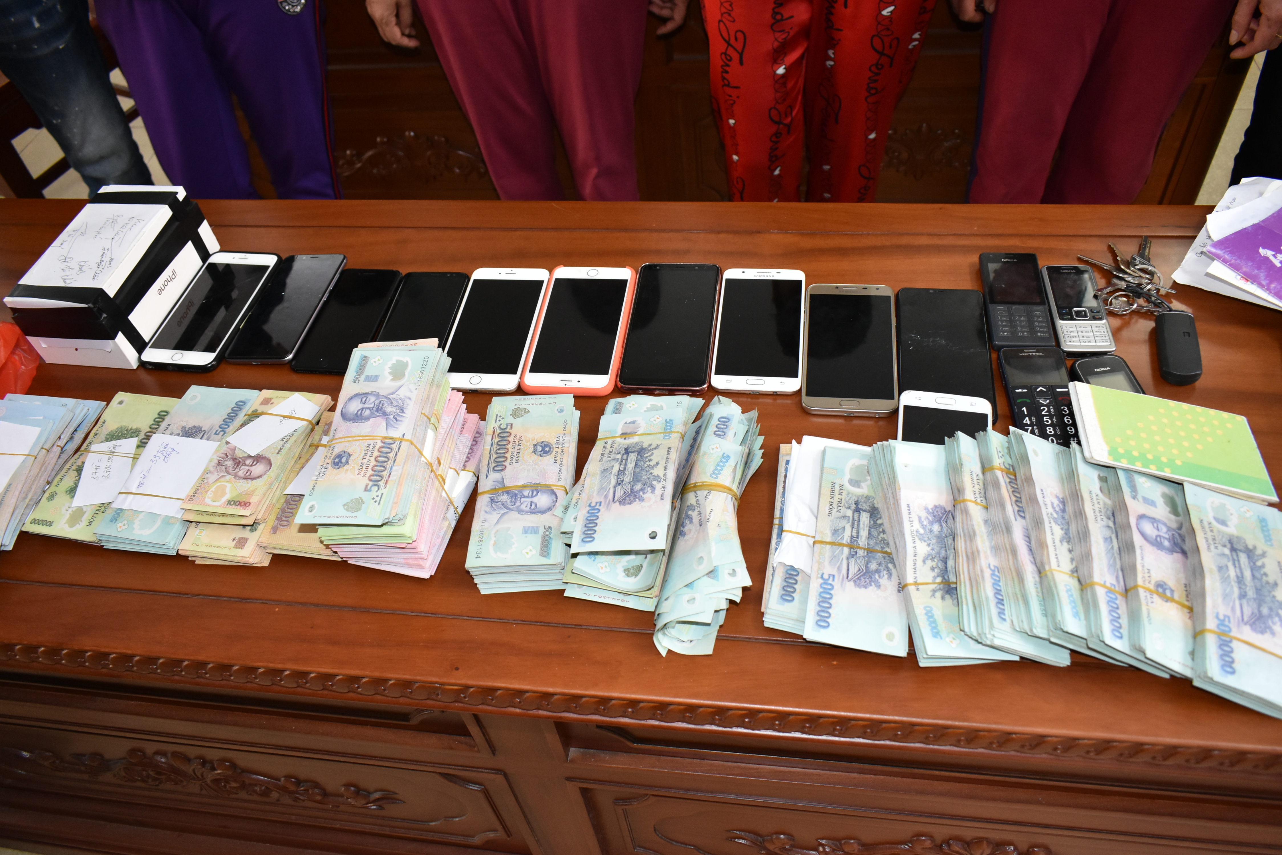 Tiến hành khám xét nơi ở của các đối tượng, cảnh sát thu giữ hơn 940 triệu đồng tiền mặt; hơn 1,4 tỷ đồng chuyển trong tin nhắn điện thoại; 1 ô tô; 13 điện thoại di động và nhiều giấy tờ khác có liên quan đến hoạt động lô, đề,…