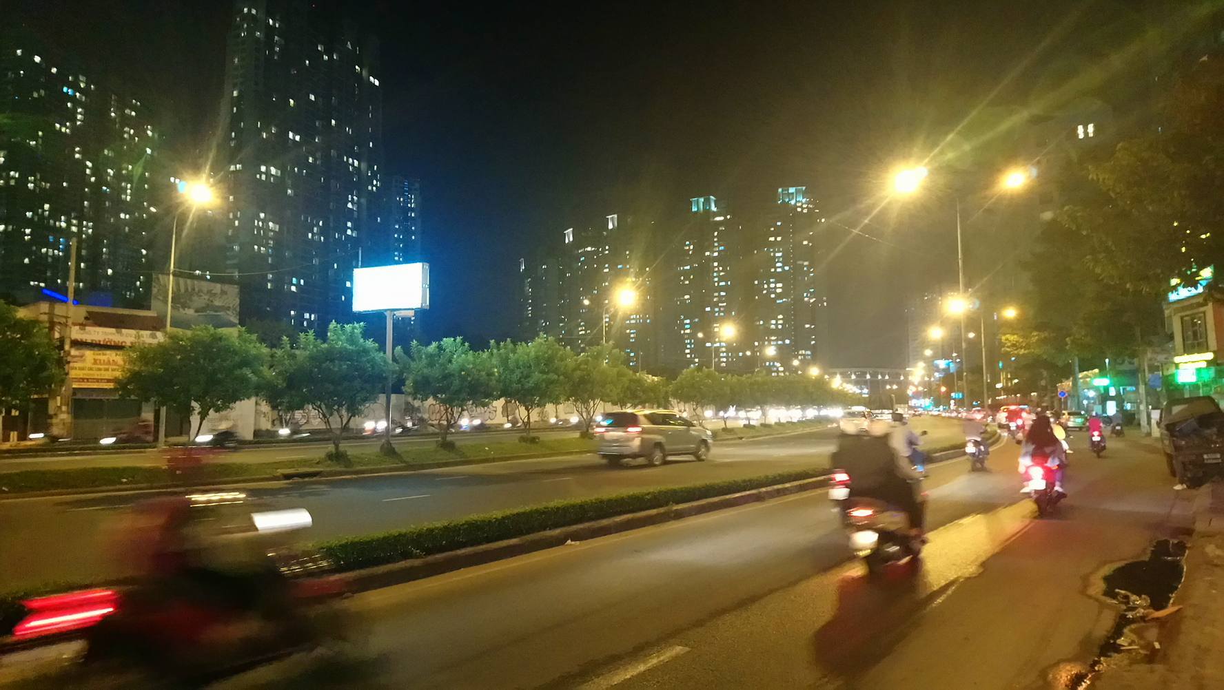 Mặt đường Nguyễn Hữu Cảnh khô ráo, các phương tiện lưu thông bình thường.