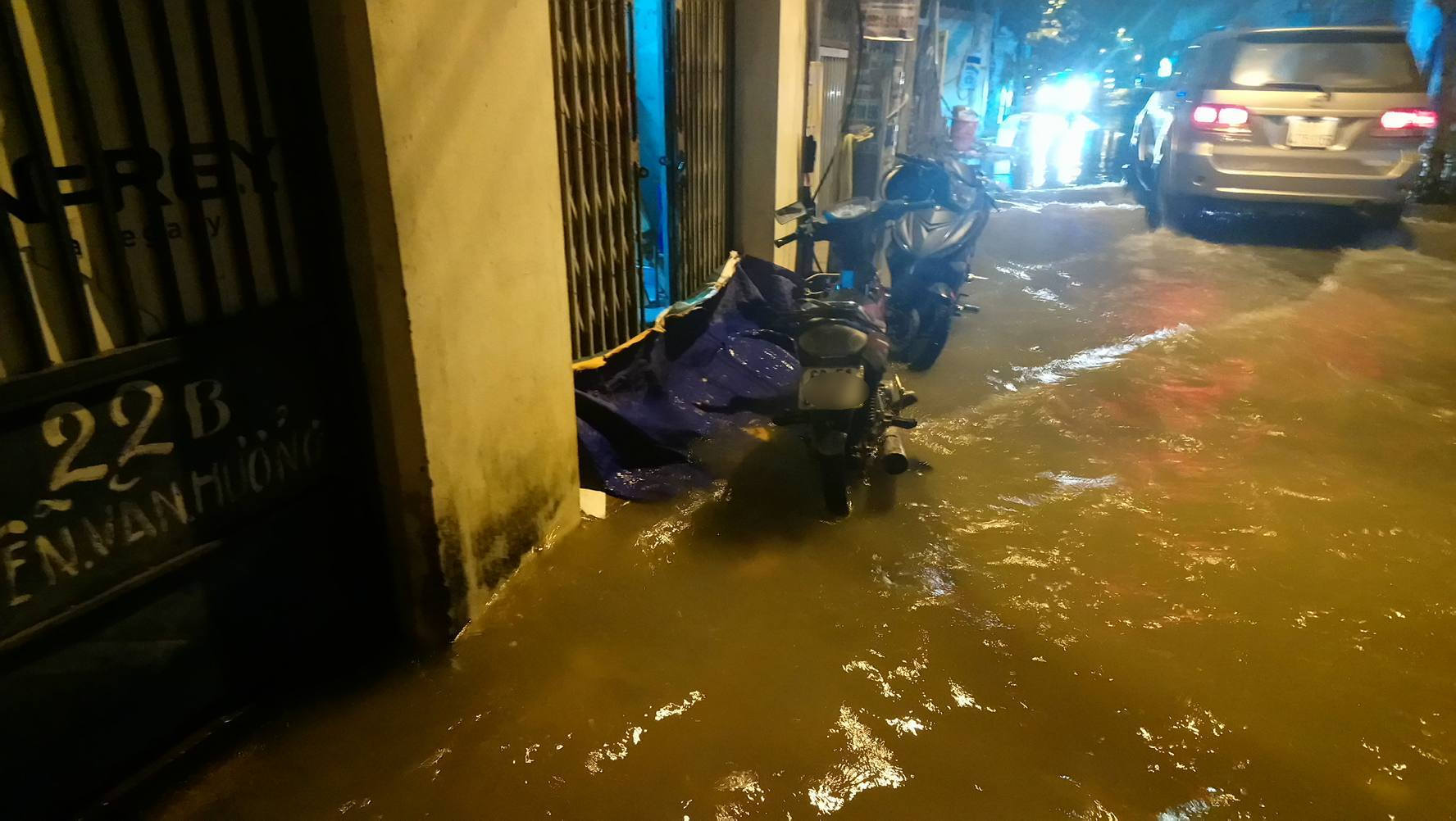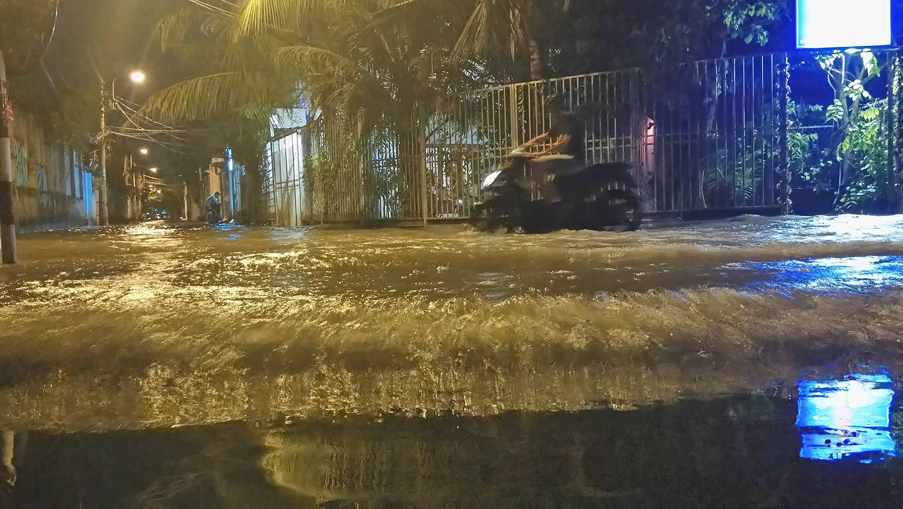 Chiều tối 6/12, triều cường dâng cao khiến một số tuyến đường Nguyễn Văn Hưởng (quận 2), Bình Qưới (Bình Thạnh), Trần Xuân Soạn, Huỳnh Tấn Phát, Nguyễn Văn Linh (quận 7), Tôn Thất Thuyết, Nguyễn Tất Thành (quận 4), đường Hồ Ngọc Lãm (Bình Tân) chìm trong biển nước.