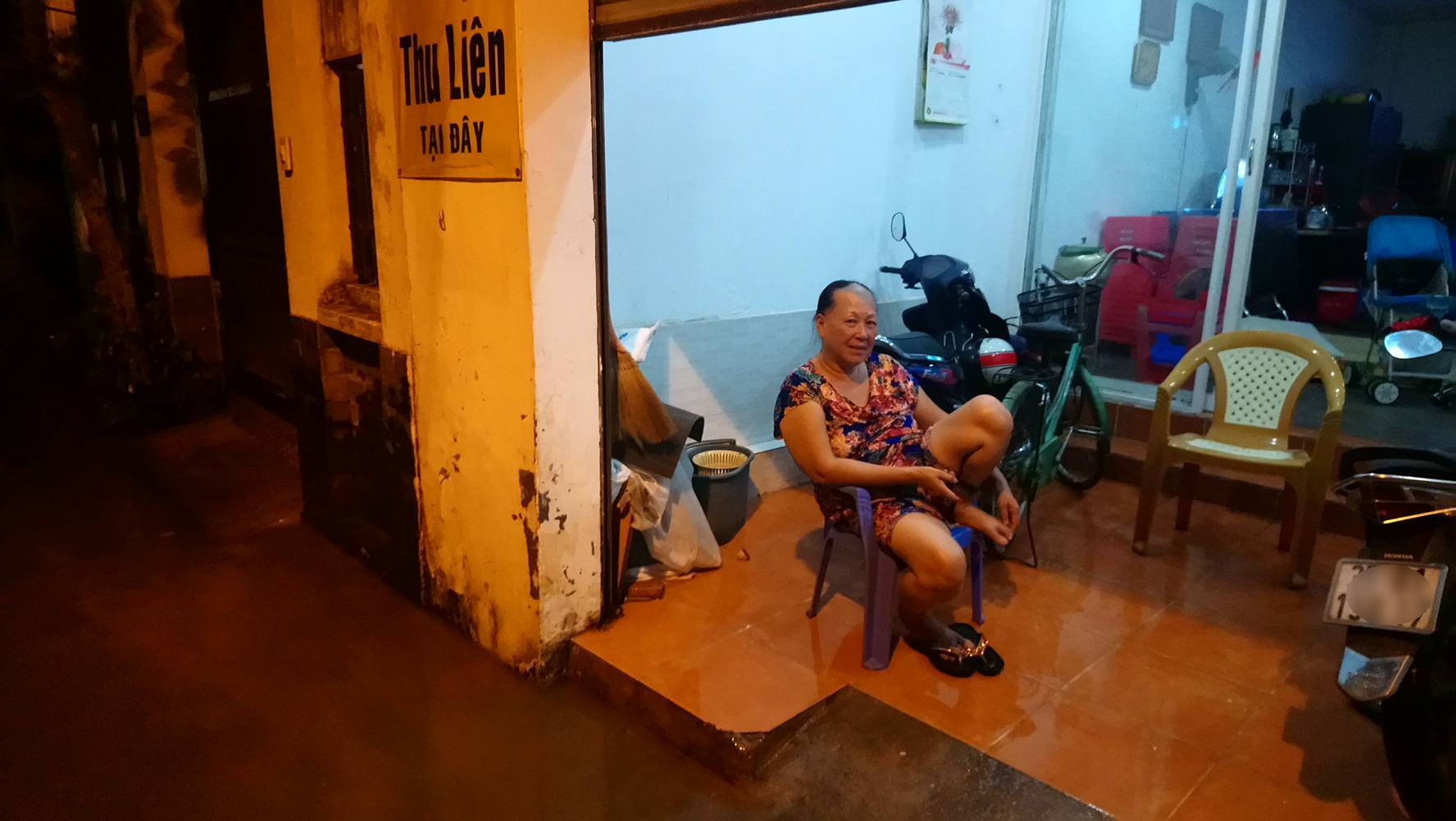 Triều cường dâng cao khiến công việc kinh doanh của gia đình bà Hoa bị gián đoạn.
