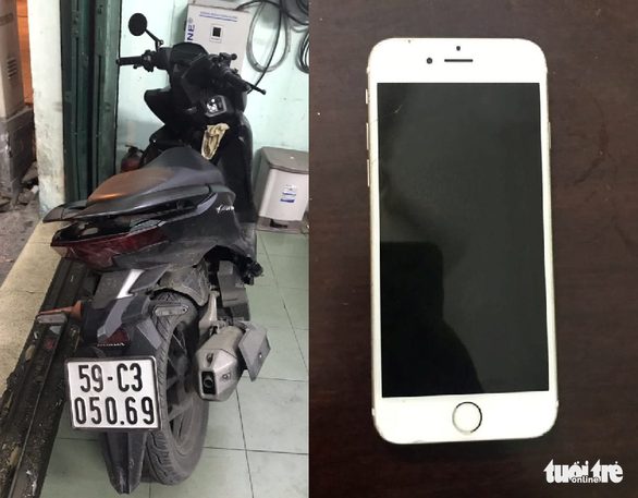 Phương tiện, tang vật trong vụ cướp giật. (Ảnh: Tuổi Trẻ).