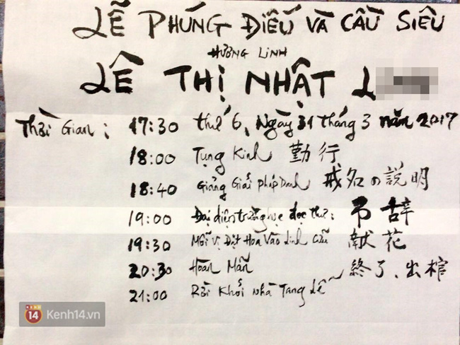 Lịch trình lễ phúng điếu và cầu siêu của bé Nhật L.