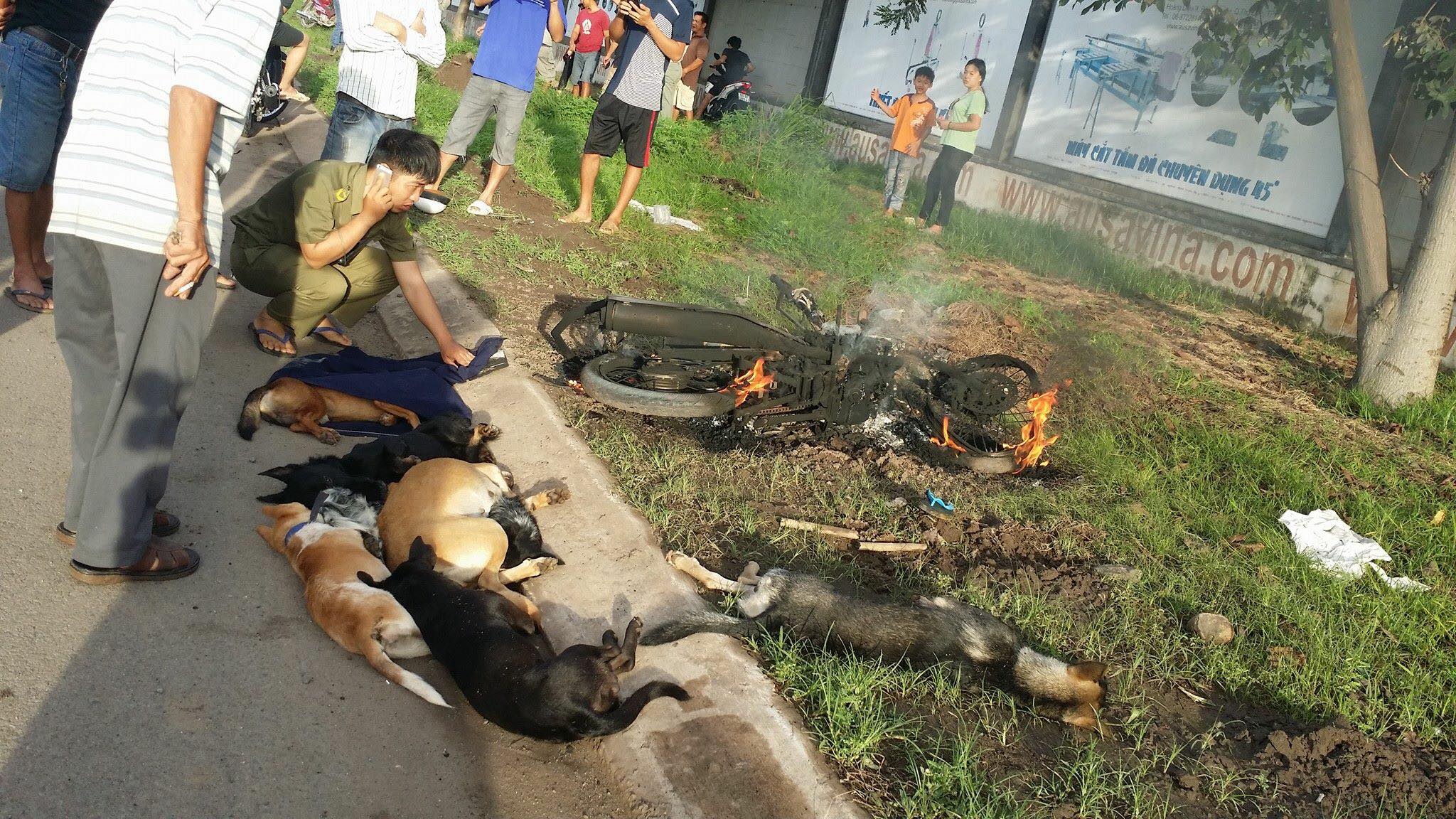 Sau người dân phát hiện vụ việc đã tri hô, đuổi bắt. Tìm thấy trong bao tải hai thanh niên này cầm theo là 7 chú chó. Do bức xúc vì thời gian gần đây “cẩu tặc” lộng hành. Hai nam thanh niên này đã bị người dân đánh đến bất tỉnh và đốt rụi chiếc xe Exciter và báo cáo lực lượng chức năng.