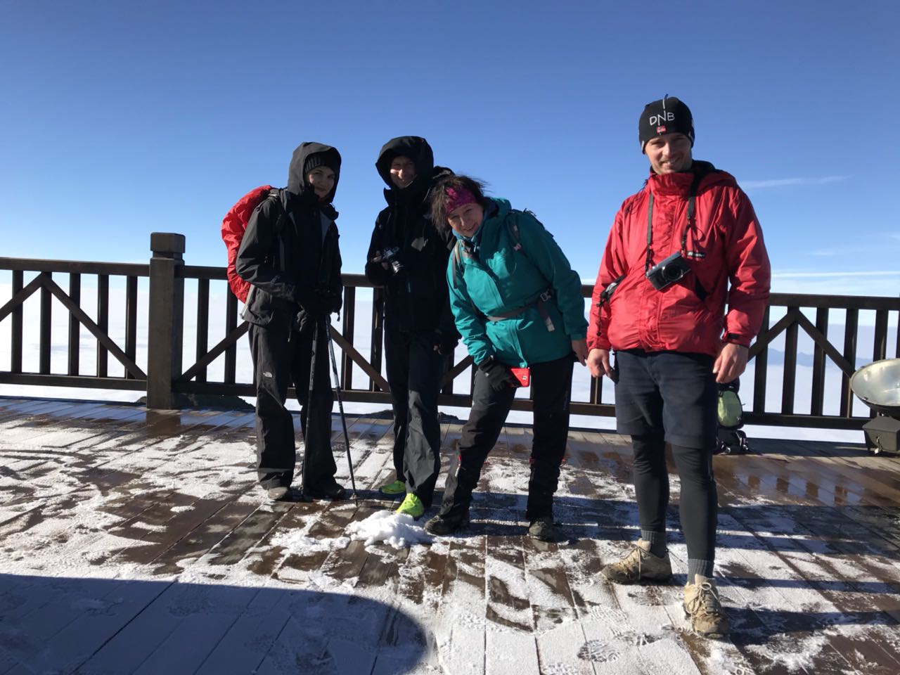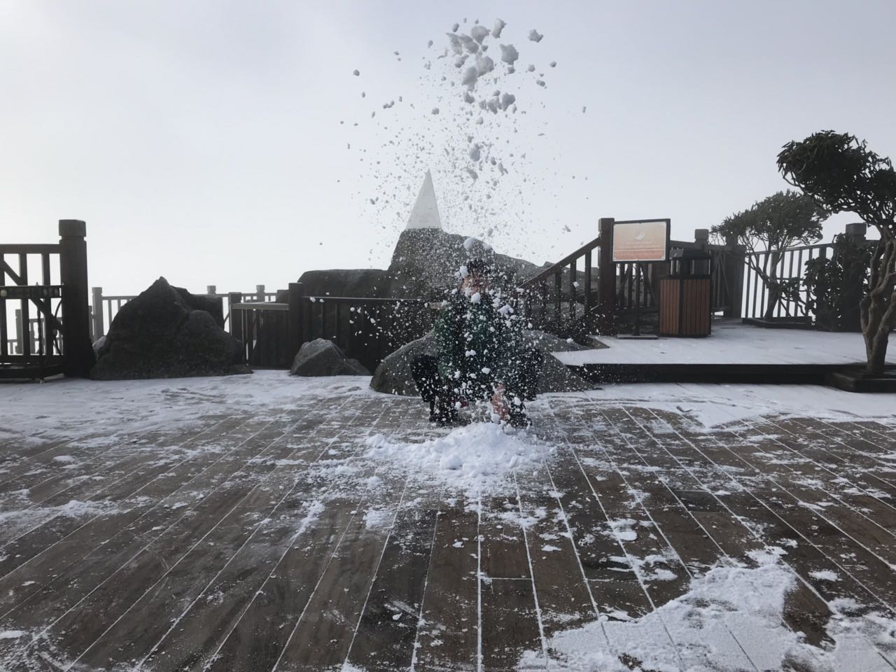 Chứng kiến cảnh tượng băng tuyết trên đỉnh Fansipan, khách du lịch vô cùng thích thú chụp hình và quay lại làm kỉ niệm.