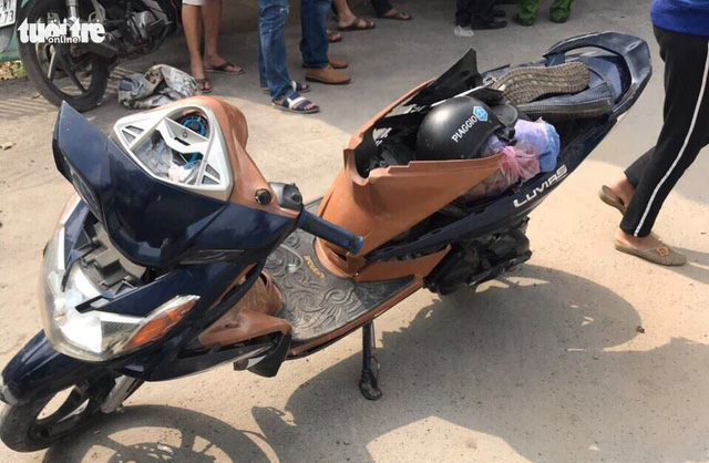 Chiếc xe máy của 2 tên cướp. Ảnh: Tuổi trẻ