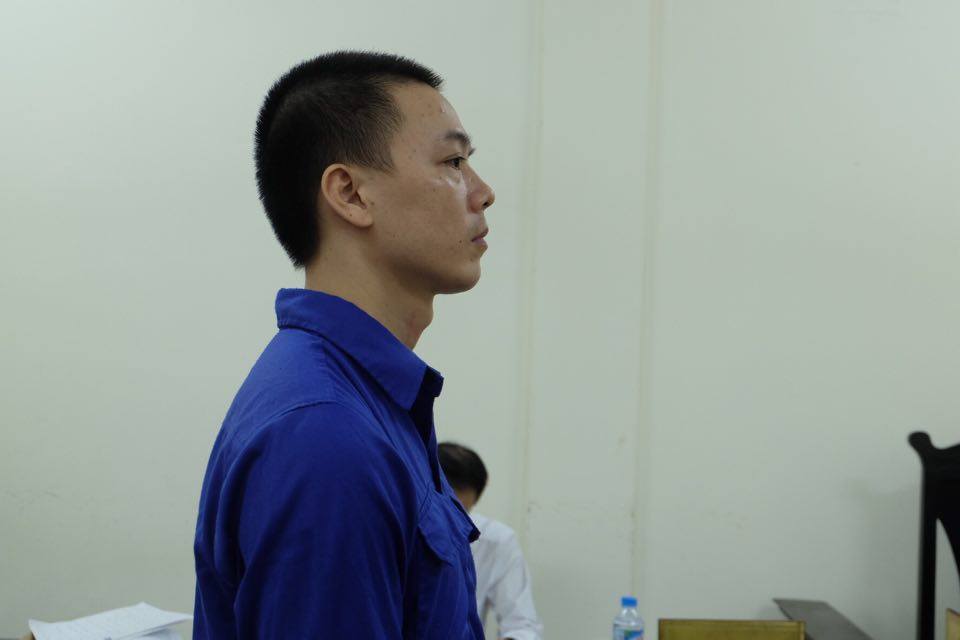 Bị cáo Cao Mạnh Hùng khá căng thẳng trước vành móng ngựa.
