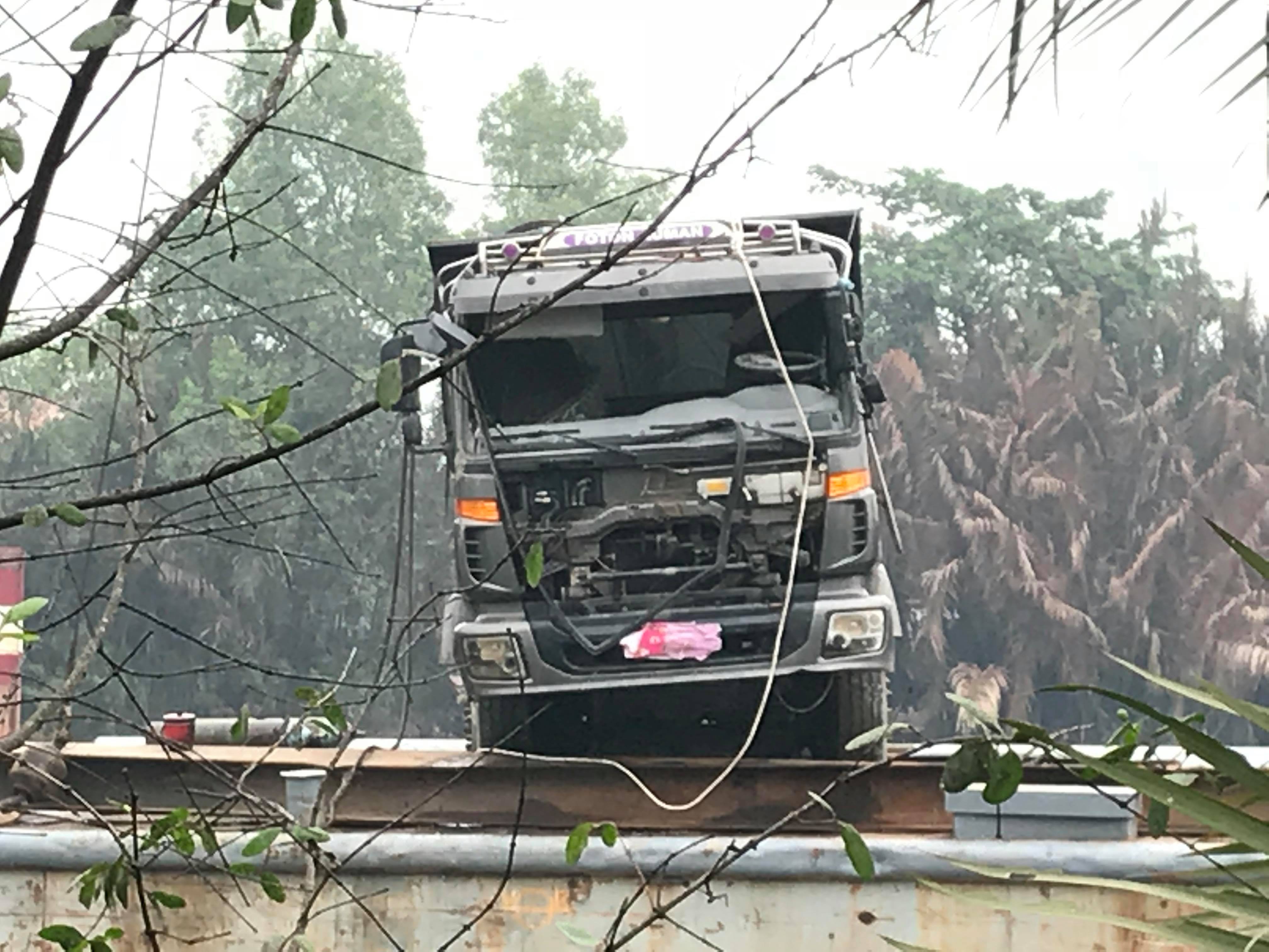 Xe tải được đưa lên sà lan