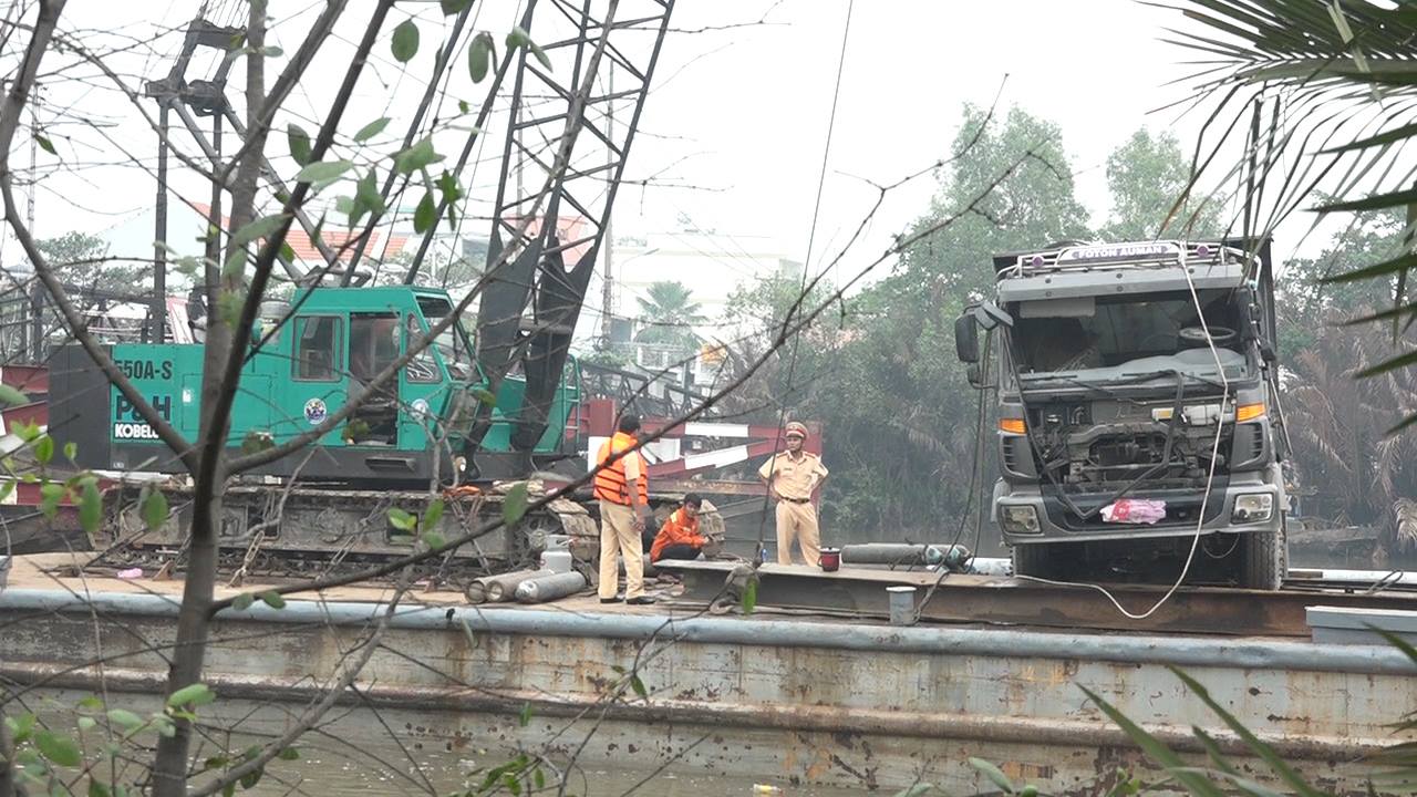 Tại hiện trường, chiếc xe tải được cầu lên sà lan, phần đầu xe tải bị móp méo, hư hỏng nặn, kính chắc gió bể nát, nhiều vật dụng trong xe ướt sũng… Sau đó chiếc xe ben được đưa lên sà lan chuyển về bờ phía xã Nhơn Đức, huyện Nhà Bè, TP. HCM.