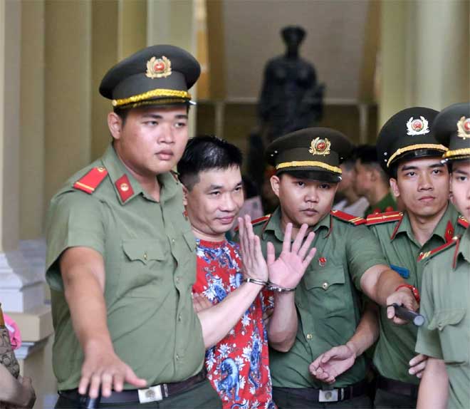 Đến cuối phiên tòa khi bị công an áp giải ra xe, Dương còn cười tươi và giơ tay vẫy chào người thân.