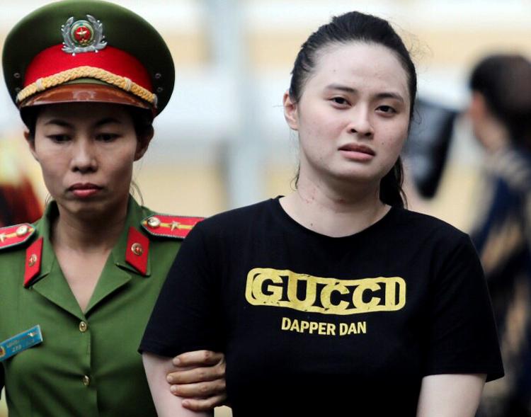 Ngọc Miu kêu oan, nói không biết túi “hàng” chứa ma túy ở phiên tòa ngày 8/5. Ảnh: VNE.