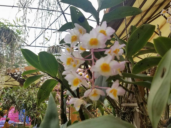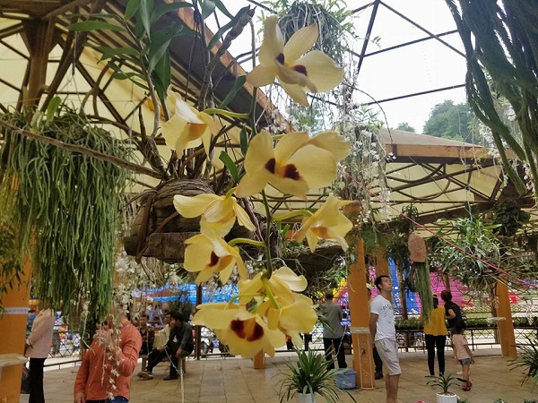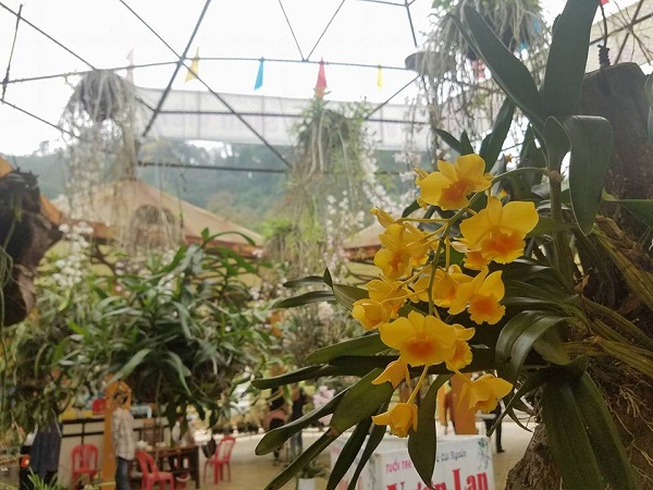 Tại khu trưng bày, từ những cây hoa lan nhỏ tí, đến những chùm lan dài gần 1 mét, thậm chí là cả những giò lan 2 - 3 người khiêng… đua nhau khoe sắc. Trong đó có thể kể đến như, màu vàng rực rỡ của sơn thuỷ tiên, trắng tinh khôi của hạc vĩ, hương thơm nồng nàn của trầm rừng và phi điệp tím hay hương thanh mát đến nao lòng của hoàng thảo trúc đen…