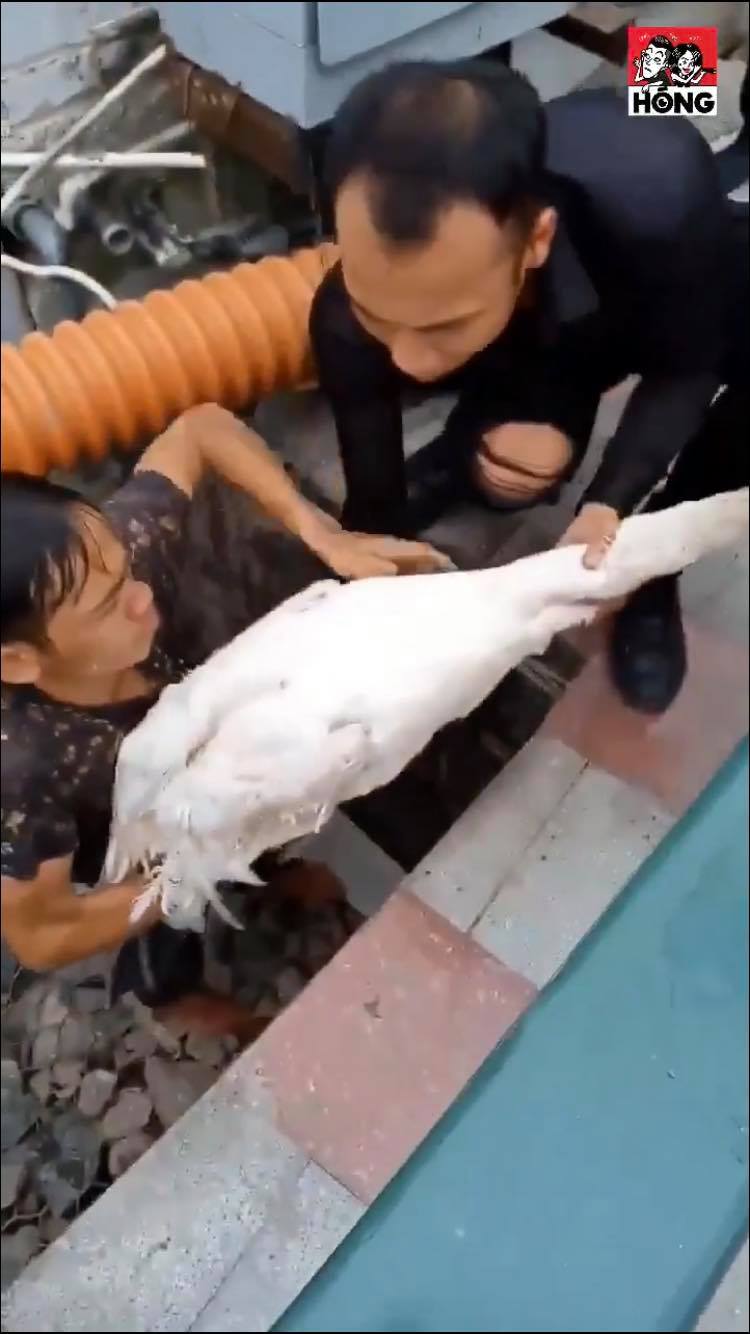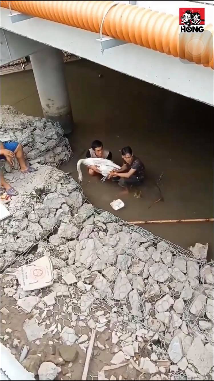Kèm với đó là nhóm người đã nỗ lực tháo gỡ một vật mắc vào chân thiên nga. Ít phút sau thiên nga được đưa lên bờ. Ngay sau khi thông tin được đăng tải đã khiến mọi người xôn xao, lo lắng cho tình trạng sức khoẻ của thiên nga.