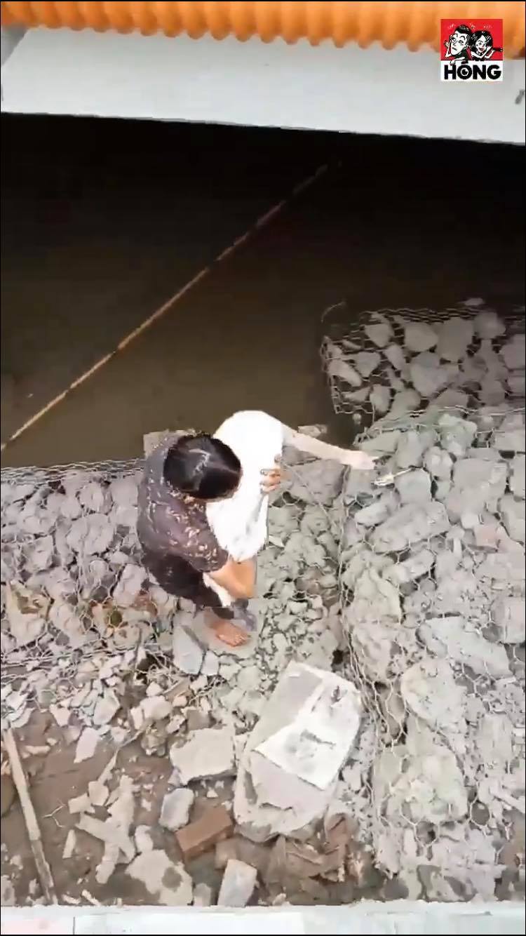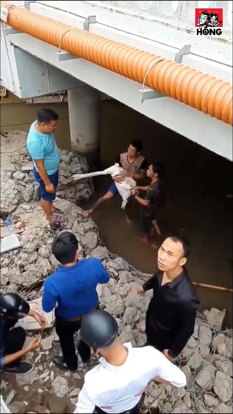 Nhóm người đưa thiên nga lên bờ. Ảnh: cắt từ clip