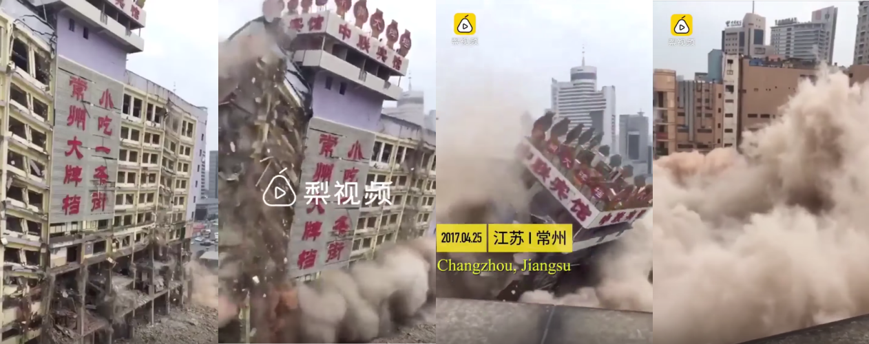 Toà nhà cũ ở trung tâm thành phố Thường Châu, Trung Quốc được cài thuốc nổ để phá huỷ trong chớp mắt.