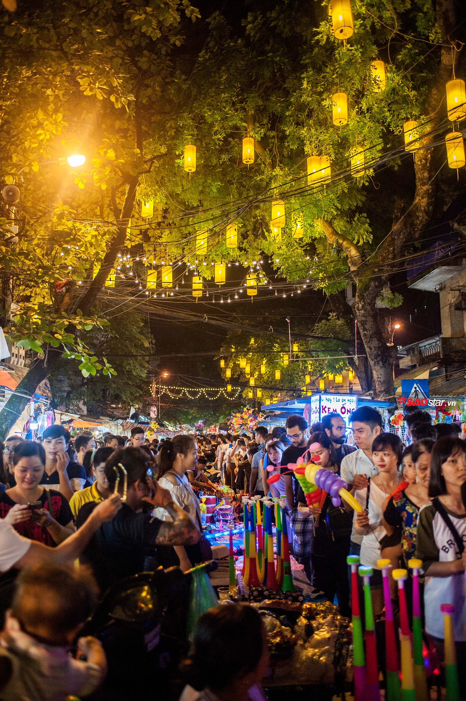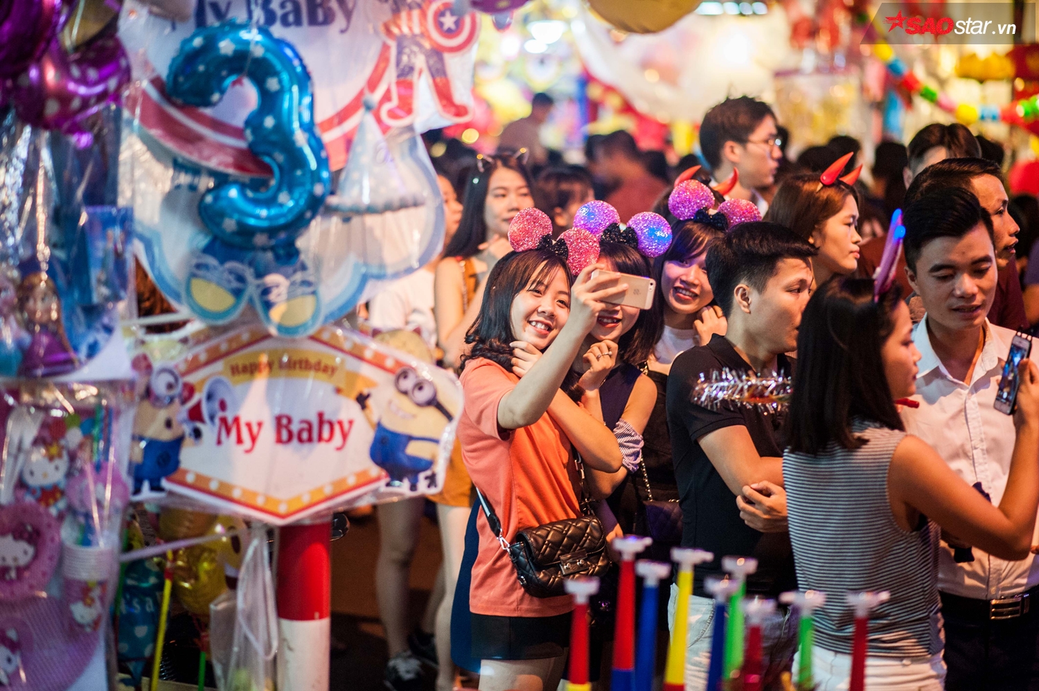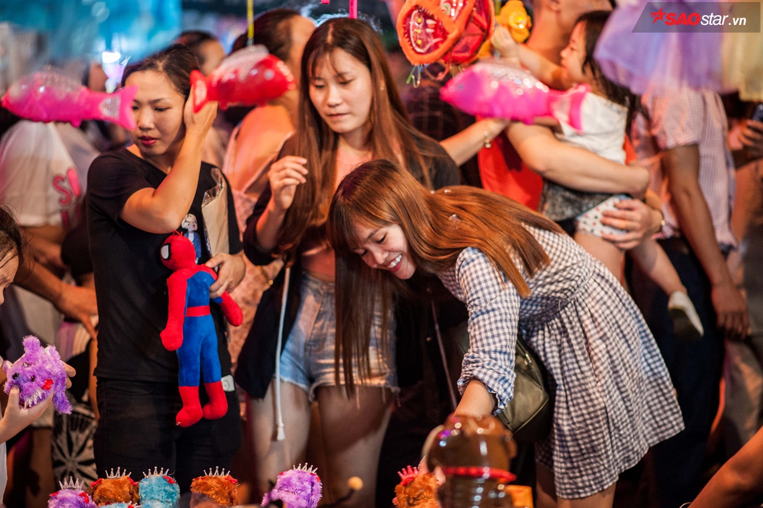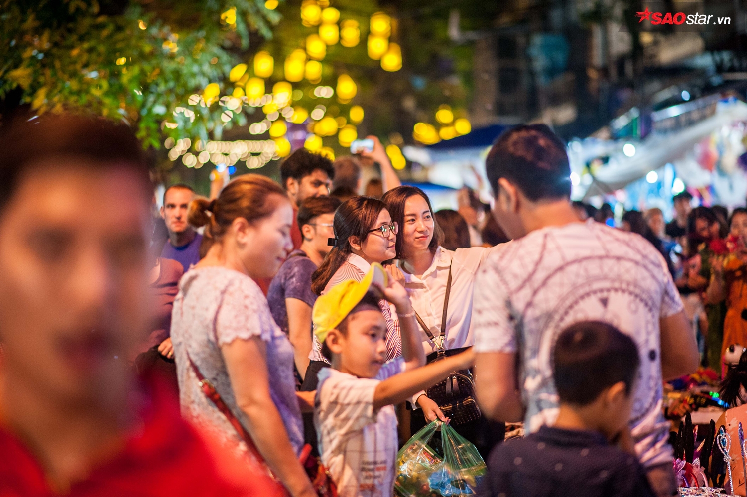 Ngoài việc buôn bán dọc 2 bên đường, nhiều tiểu thương còn tranh thủ, mở sạp bán hàng ngay giữa lòng đường. Vì thế, lối đi cho du khách bị thu hẹp dẫn đến cảnh chen chúc, đùn đẩy nhau. Đi chơi Trung thu nhưng nhiều người không khỏi toát mồ hôi, phần vì mệt mỏi, phần vì chán nản do không còn hơi sức đâu để chụp ảnh hay ngắm nhìn các loại đèn lồng hay đồ chơi.