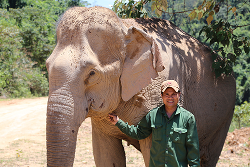 Anh Trần Văn Tân với công việc quản con voi cuối cùng ở rừng Quảng Bình. Ảnh: Hoàng Táo